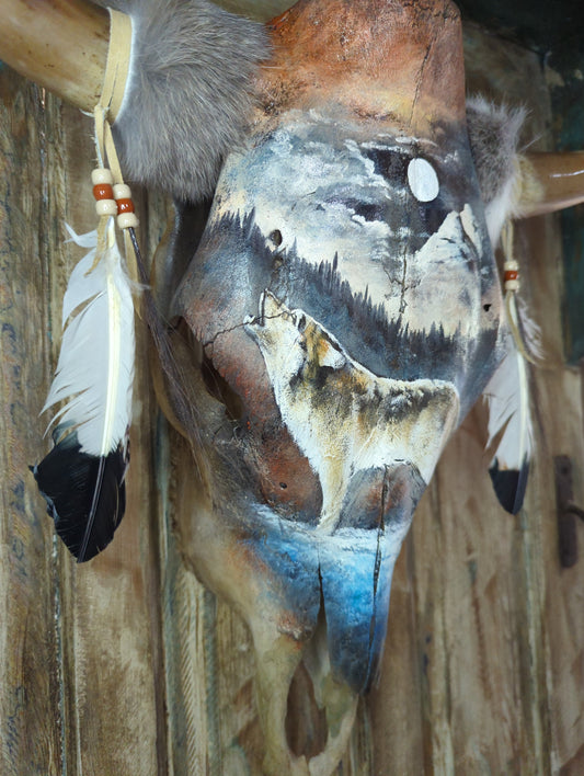 Sold out"Howling Wolf" Painted Cow Skull