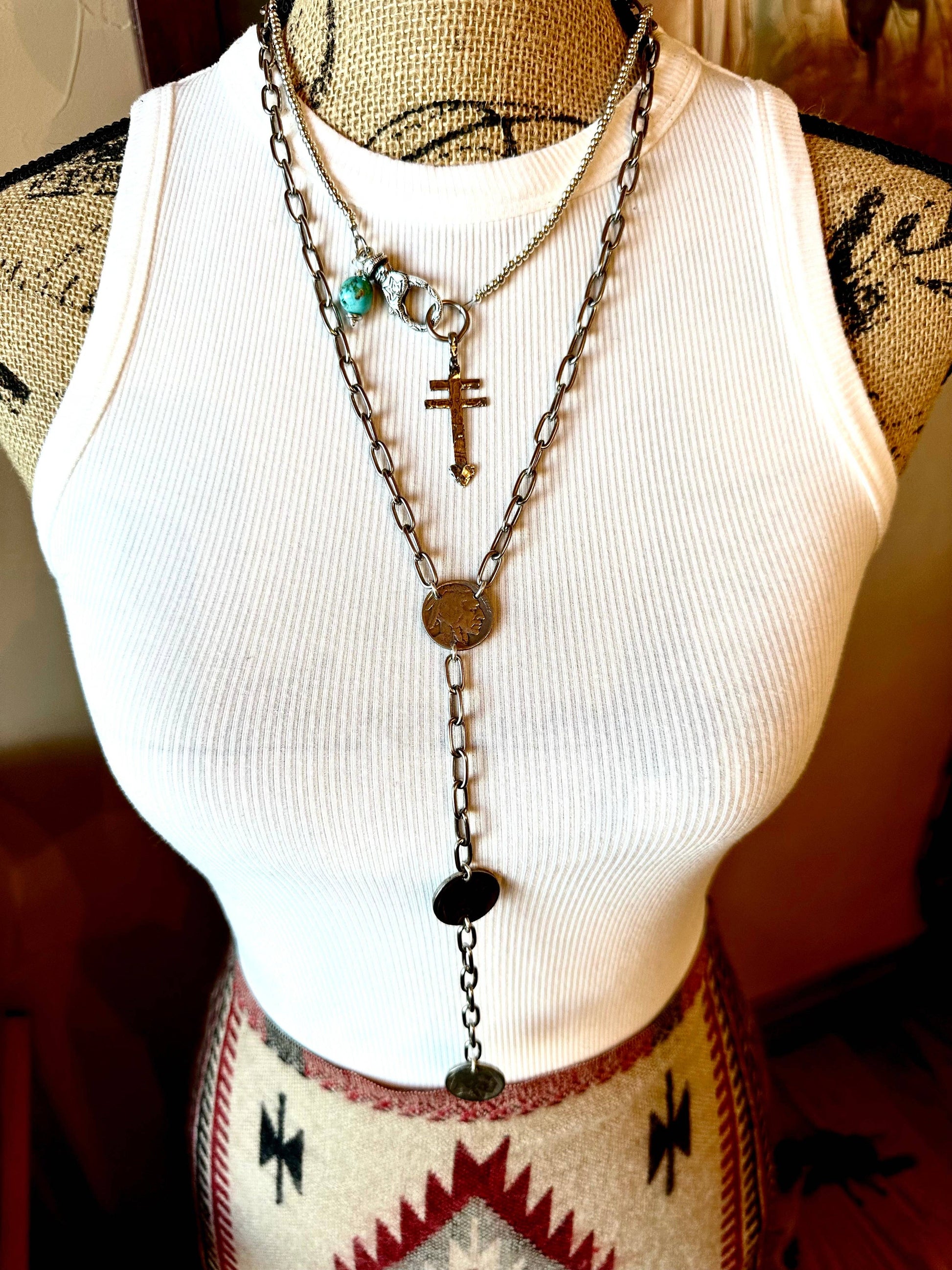 Buffalo Nickel, Long Paperclip Chain Lariat