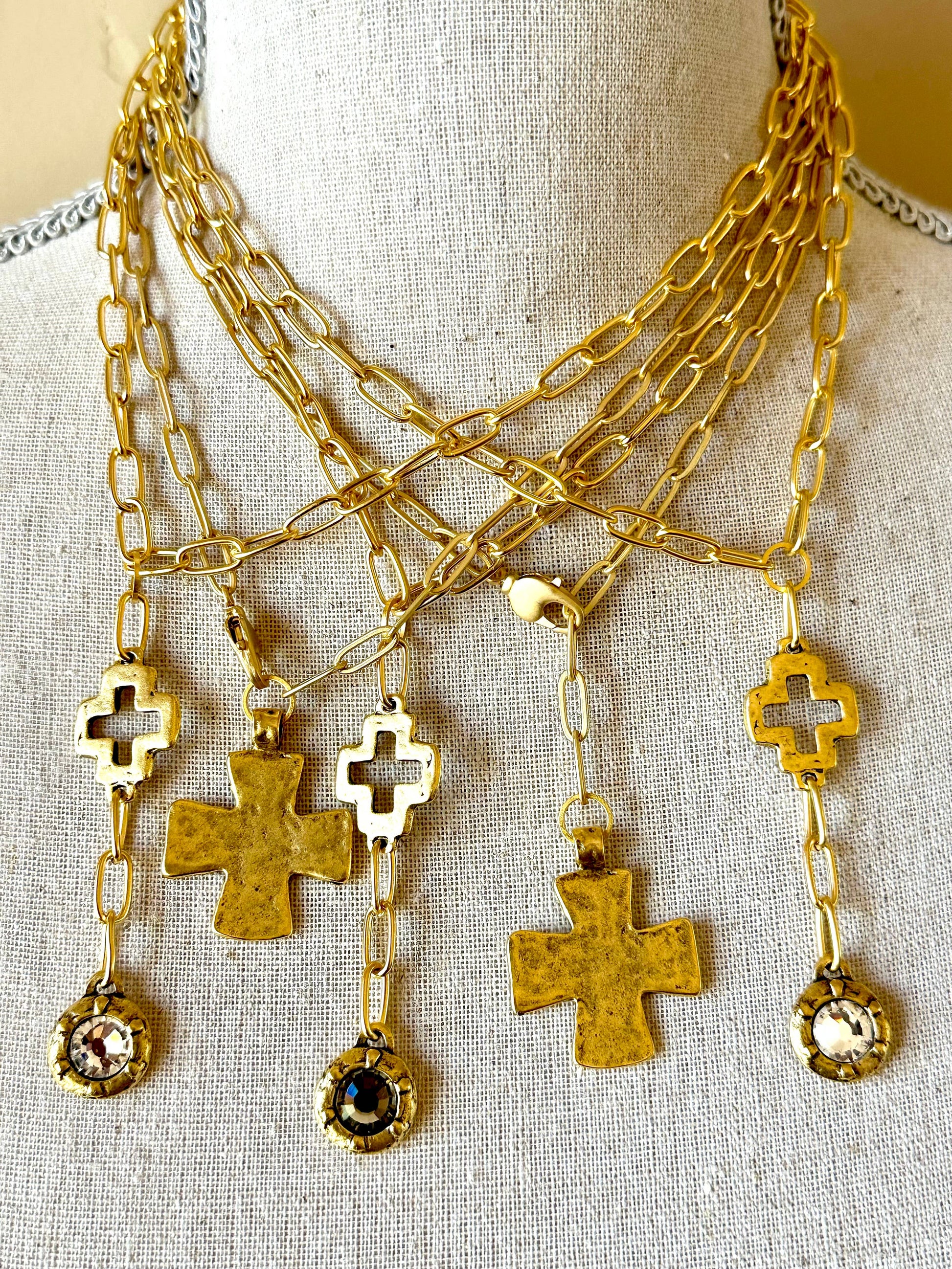 Chunky Gold Cross and Swarovski Crystal Necklaces
