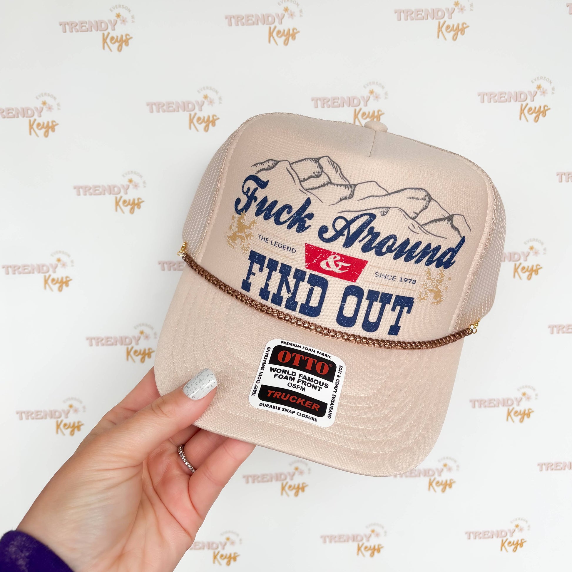 This eye-catching hat features a bold message and a comfortable mesh back. Perfect for making a statement. It's a classic. High profile foam front trucker hat - brand will be Otto or Nissun based on color availability. Hat chains sold separately.